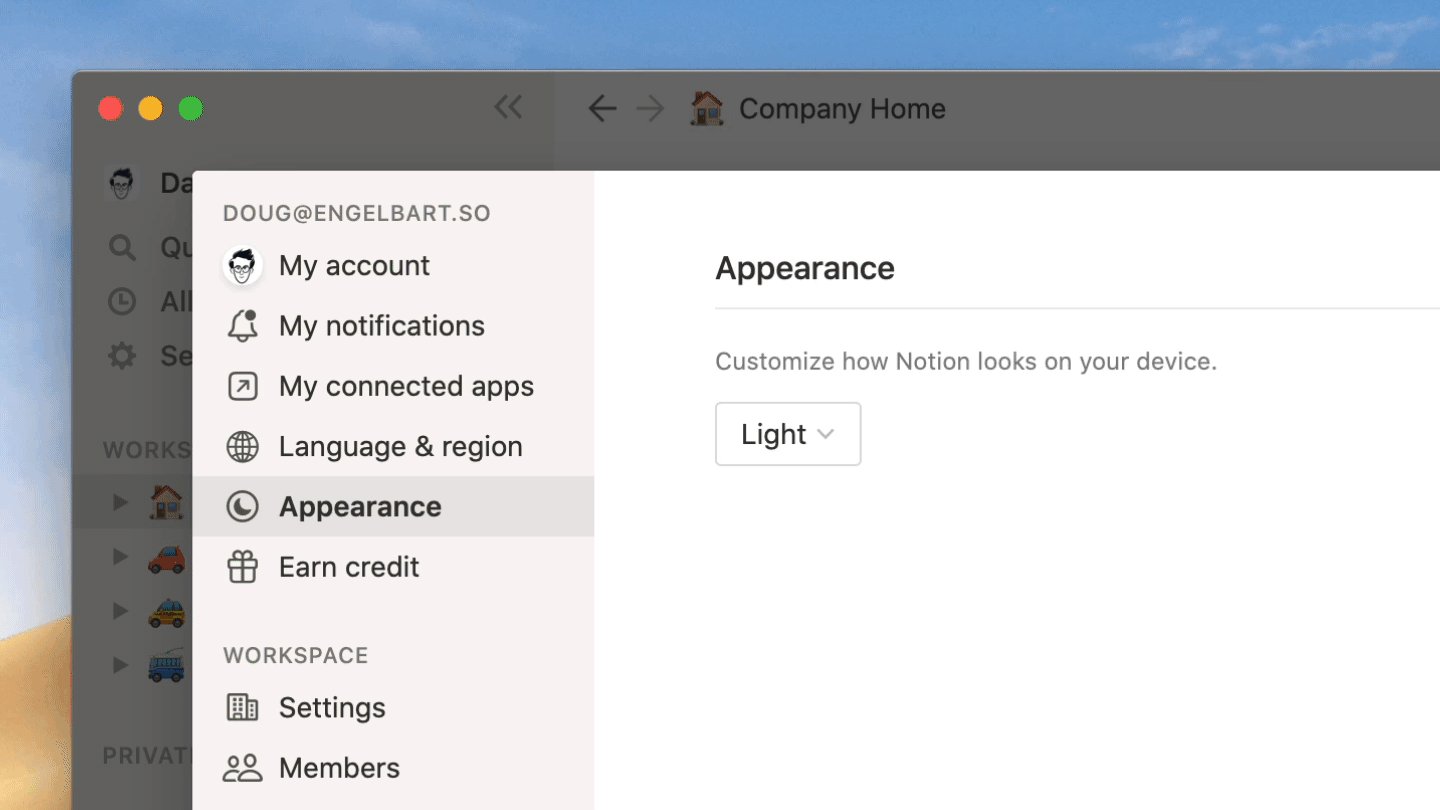 How to activate dark mode on Notion. Choose Apple menu System Preferences click General then select one of the Appearance options at the top of the window. There isnt a whole lot of difference between Notion for Web and the Notion Mac App with the main being Notion for Mac offers offline editing.